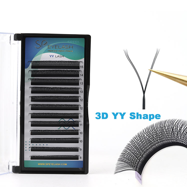 Las extensiones de pestañas 3D YY presentan un diseño en forma de Y con 6 extensiones de pestañas individuales unidas entre sí. Esta forma única hace que sea muy sencillo crear abanicos al agarrar con unas pinzas, con 3 puntas a cada lado. No se requieren habilidades especiales y puedes lograr instantáneamente un efecto de grupo 6D.
