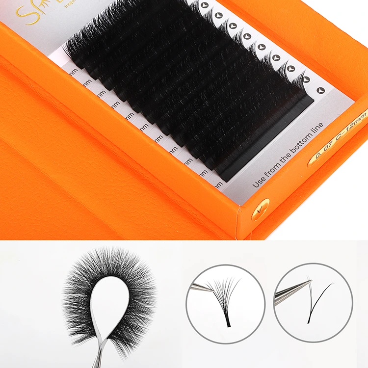 La característica decisiva de las pestañas rizadas en forma de V es su multifuncionalidad. Ofrece otros estilos como W, YY y en forma de V icónico, así como diferentes especificaciones de 3D a 6D, lo que facilita la creación de pestañas falsas esponjosas de acuerdo con las necesidades del cliente.